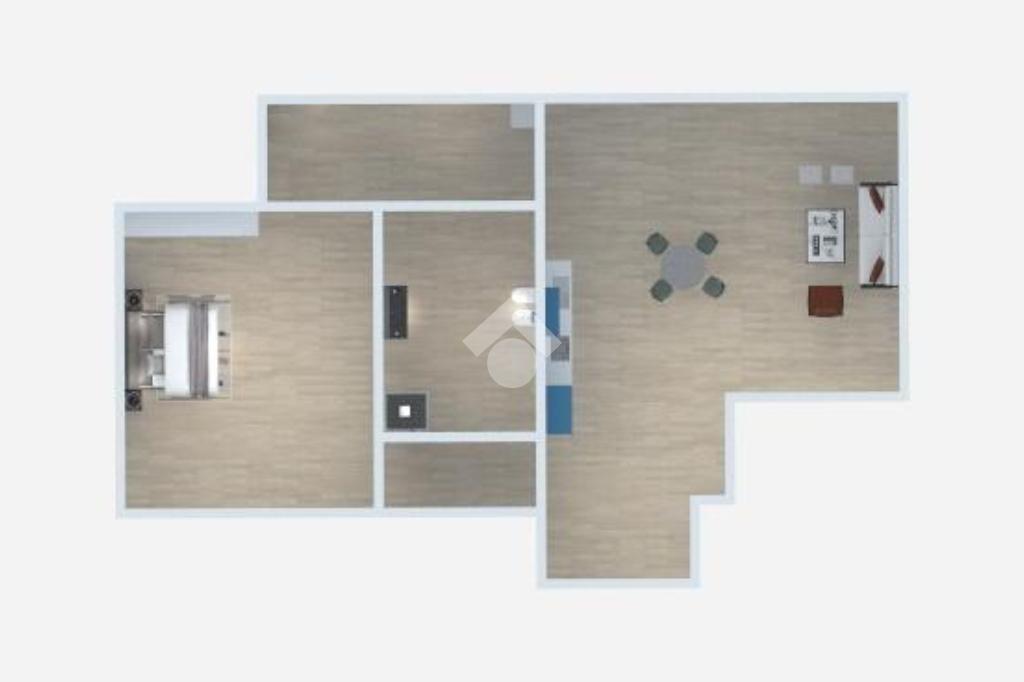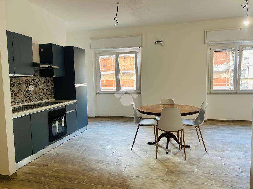 L’appartamento si apre su un ampio soggiorno luminoso con angolo cottura, perfetto per vivere momenti di relax e convivialità.