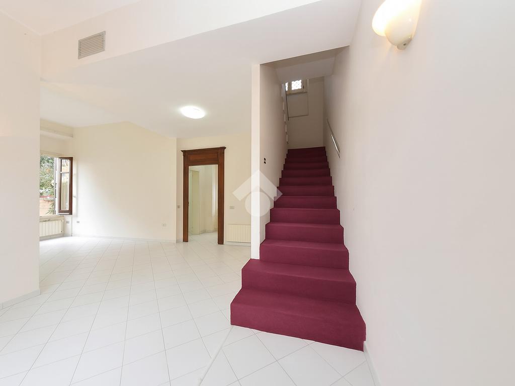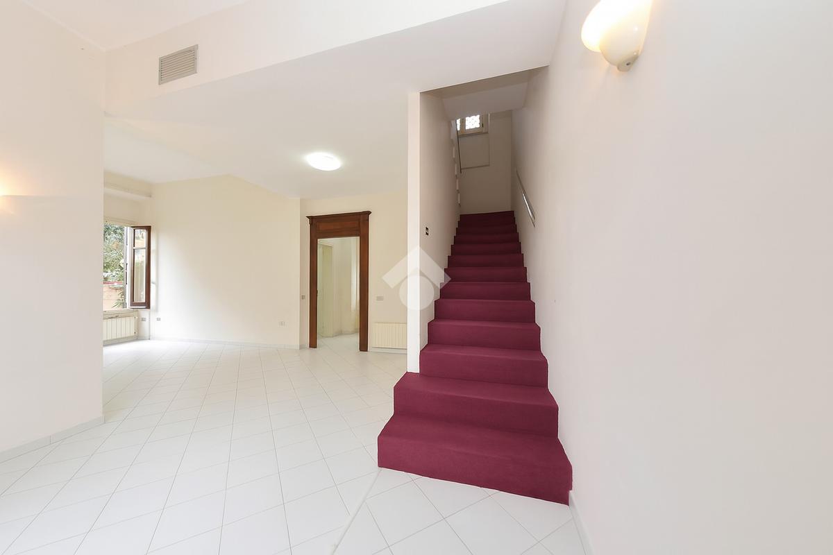 Dalla scala interna, si sale al primo piano, che ospita la zona notte, con il bagno padronale, due camere matrimoniali e una singola. Da quest’ultima, attraverso una porta-finestra, si accede al luminoso balcone all’angolo tra Via Firenze e Via Siracusa.